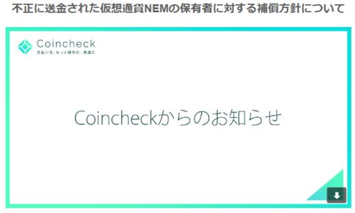 昨日(2018年1月27日)、 コインチェックがハッキングされて、 580億円相当のXEMが盗まれた、 と言うニュースのことを書きました。 www.shiwaoka.com この補償について、 コインチェック側は記者会見にて 「対応を検討する」 とだけ回答していました。 それ…